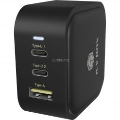 Notebook Netzteile ICY BOX IB-PS103-PD, Ladegerät (schwarz, Mit 3 Anschlüssen Und Power Delivery)