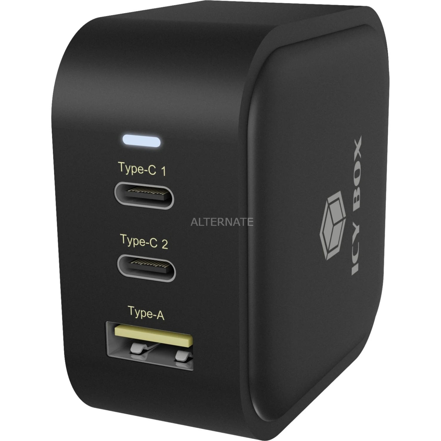 Das ICY BOX IB-PS103-PD ist ein Steckerladegerät mit 3 Anschlüssen und Power Delivery. Mit dem ICY BOX IB-PS103-PD lädt man bis zu 3 Geräte gleichzeitig, z.B. ein kleines Notebook, ein Tablet und ein Smartphone. Es stehen zwei USB Type-C und ein USB Type-A Anschluss zur Verfügung. Die kompakte Bauform des ICY BOX IB-PS103-PD ist handlich für unterwegs, dennoch steckt mehr drin als vermutet und überzeugt durch geballte Power. Insgesamt stehen über das Steckernetzteil bis zu 65 Watt Maximalleistung zur Verfügung.